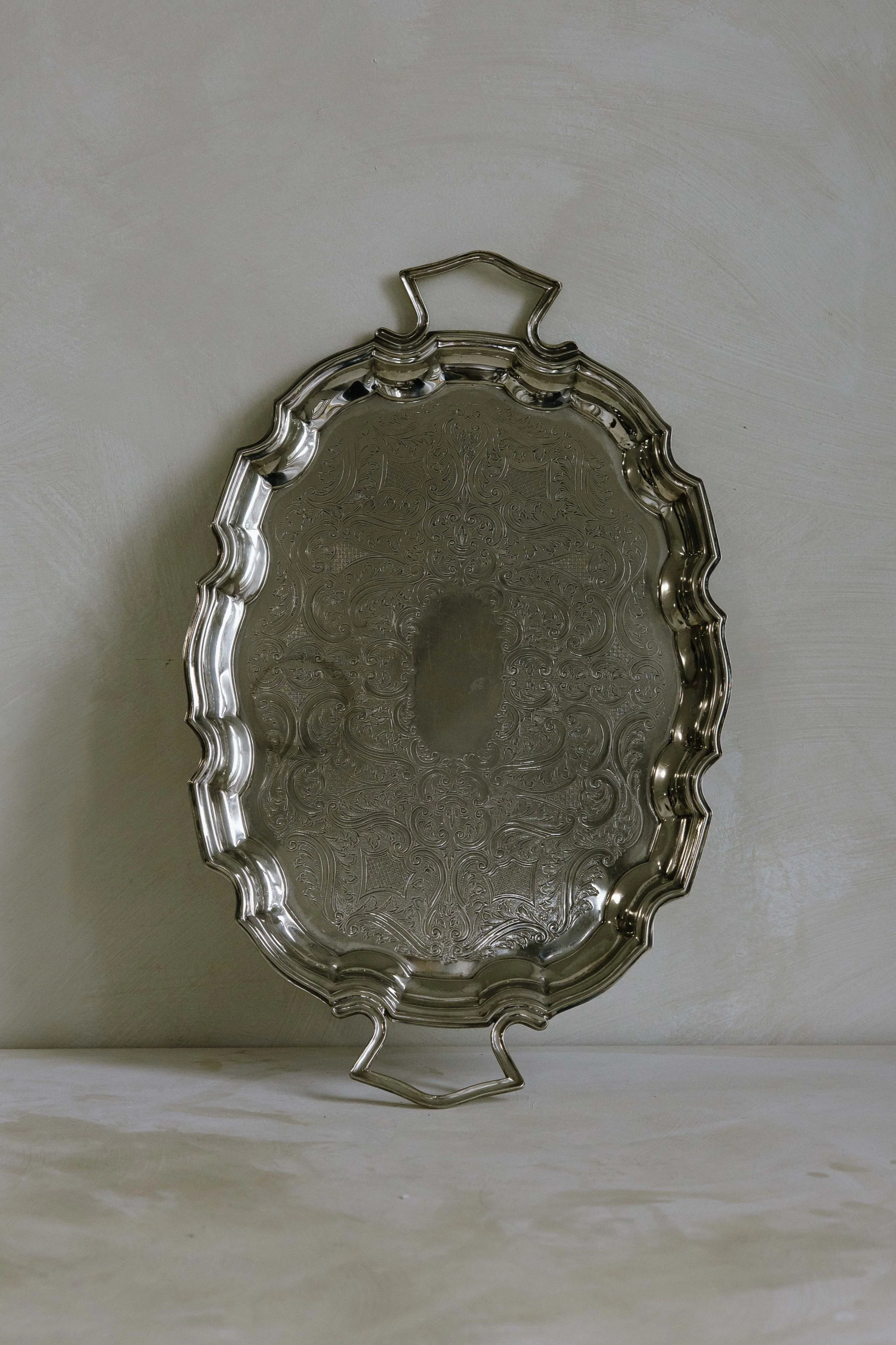 Ornate silver handle tray
