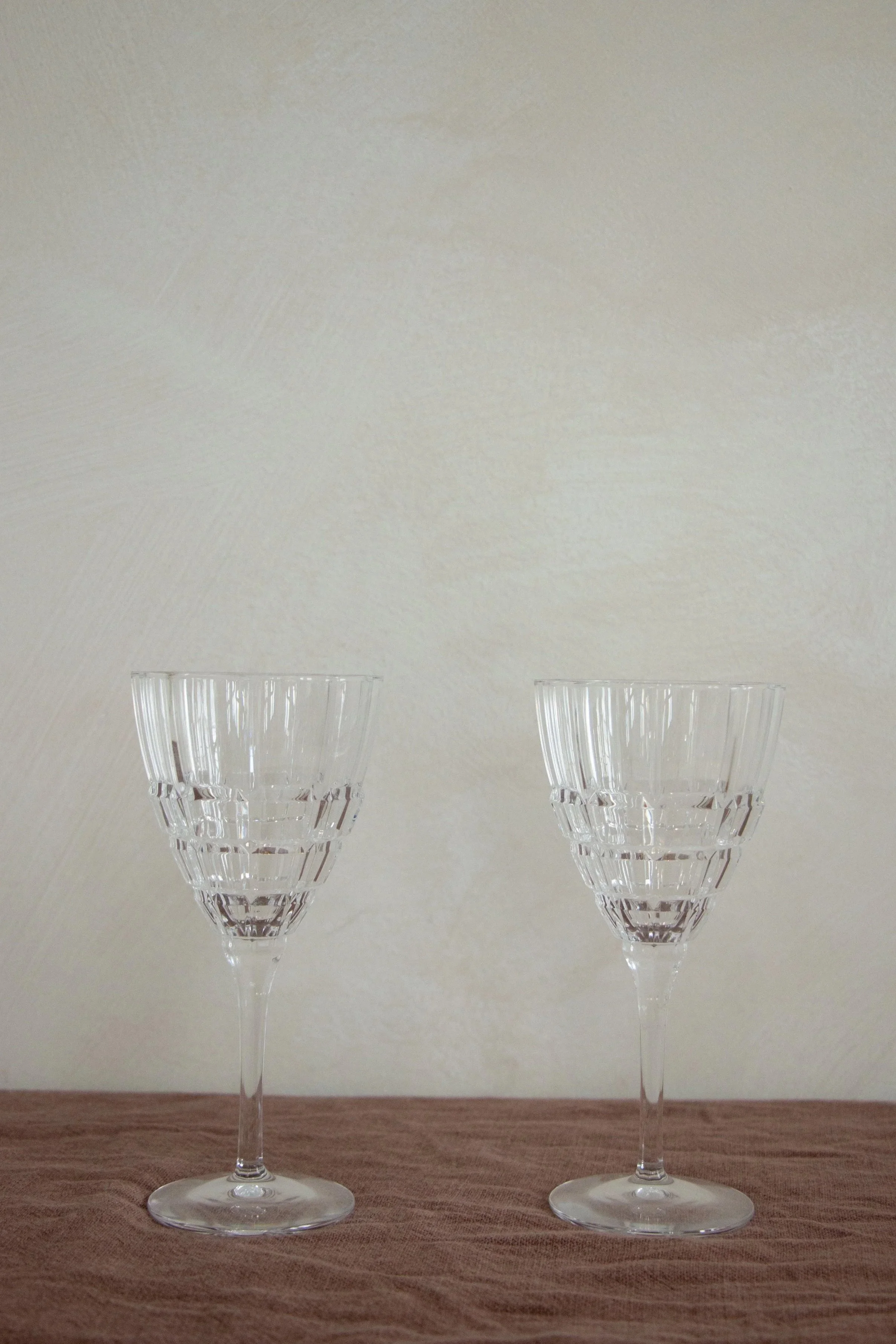 Crystal wine glassesRental price: $15.00Please keep in mind that all pieces are thrifted, so imperfections may occur.